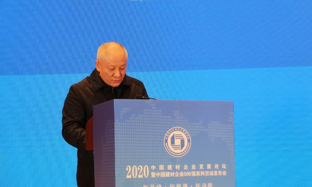 中國(guó)建筑材料企業(yè)管理協(xié)會(huì)副會(huì)長(zhǎng)李玉水宣讀關(guān)于發(fā)布2020中國(guó)建材企業(yè)500強(qiáng)等獎(jiǎng)項(xiàng)的通知